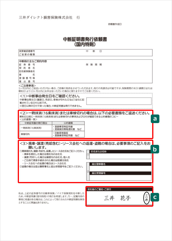中断証明書発行依頼書 自動車保険 バイク保険