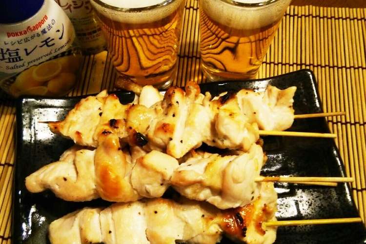 魚焼きグリルで焼き鳥 鶏むね肉 塩レモン レシピ 作り方 By たぬぴぃ クックパッド