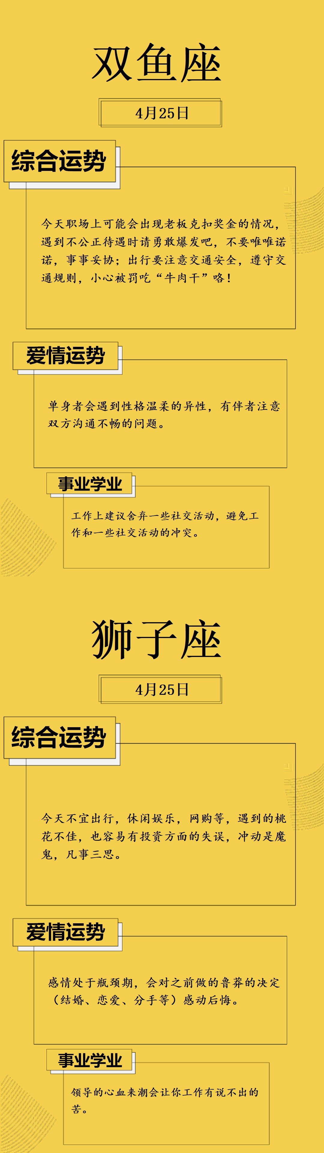 日运 12星座2020年4月25日运势播报 方面