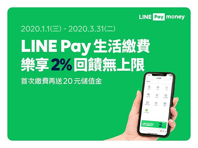 生活繳費用line Pay 當月消費任5筆享繳費金額2 儲值金回饋無上限 首次繳費再送20元
